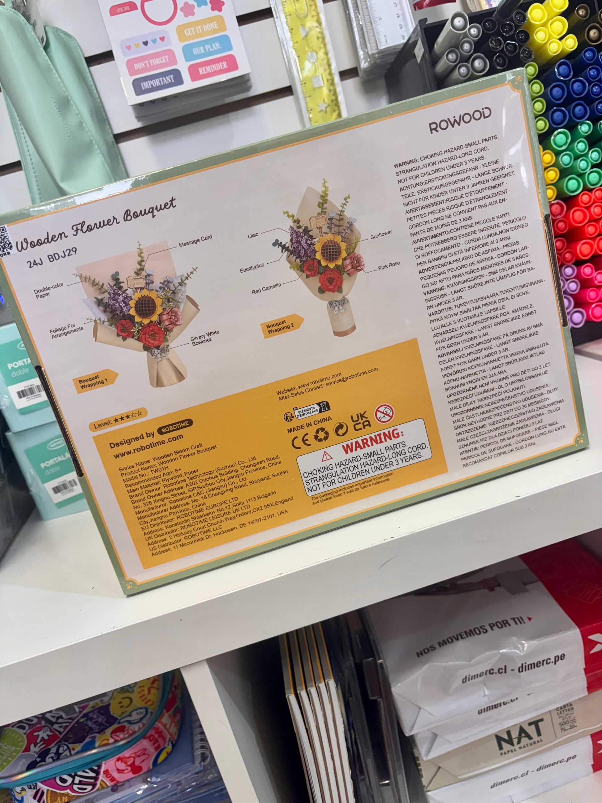 “Flower Bouquet” es un hermoso puzle 3D de madera diseñado meticulosamente para emular la forma de un bello y colorido ramo de flores para esa persona especial. Este pack incluye 5 modelos de la linea Rowood de Robotime: Sunflower, Lilac, Red Carmelia y Pink Rose.