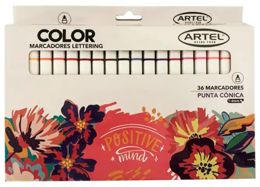 Estuche 36 Marcadores Lettering Punta Cónica ARTEL