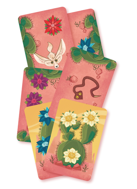 Un último detalle que deben tener en cuenta mientras exploran el desierto es que no todas las flores son iguales... Si te pinchas con una carta de cactus que tenga una flor roja, además de descartarla deberás perder una segunda carta de tu reserva a tu elección. Sin embargo, no hay riesgo sin recompensa: al final de la partida, el jugador que tenga más flores rojas gana 5 puntos adicionales.