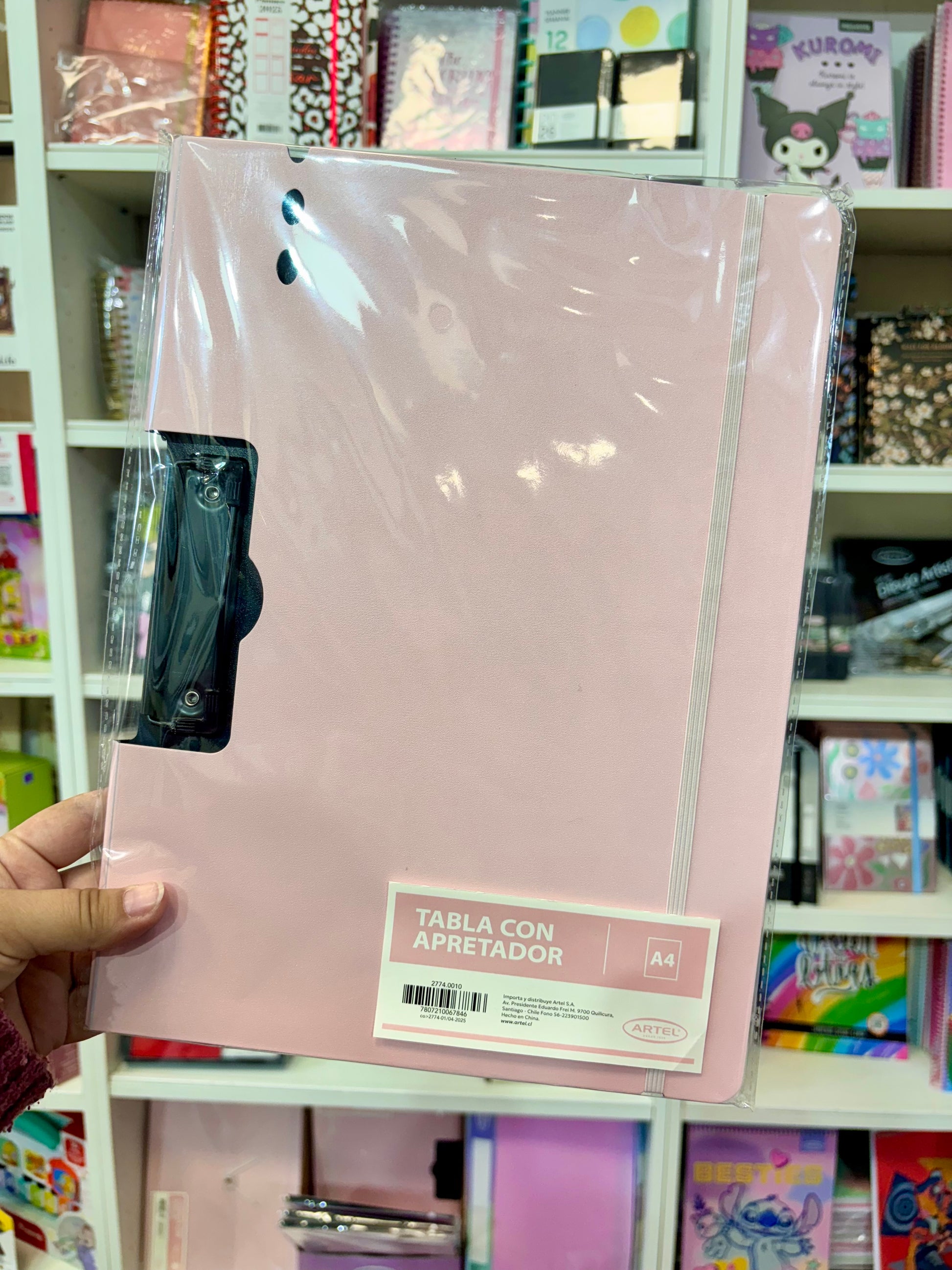Tabla con apretador tamaño A4, con portada tipo carpeta para proteger tus documentos.